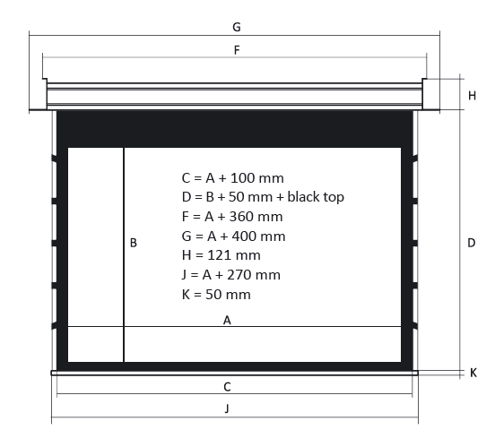 Экран с электроприводом встраиваемый Kauber InCeiling Tensioned BT Cinema, 122" 16:9 Clear Vision,  152x270 см. дроп 60 см., длина корпуса 310 см.