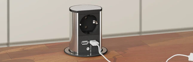 Удобное, компактное решение, с небольшой глубиной установки, которое удивит вас не только красивым дизайном, но и практичностью. Розетка подходит как для офисных помещений, так и для домашних (кухонных) пространств. При монтаже в офисные столы зачастую достаточно просто вынуть пластиковую заглушку стандартного диаметра 80мм для организации кабелей и установить на ее место Elevator. В таком случае монтаж может быть осуществлен без специального оборудования.