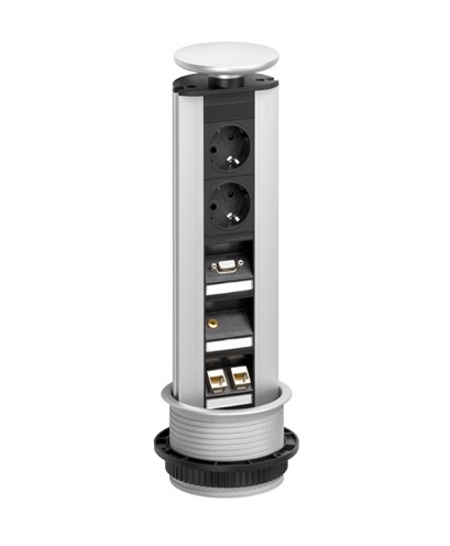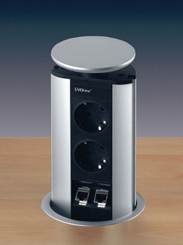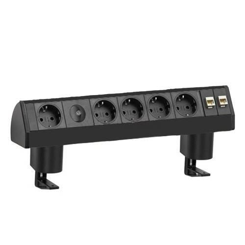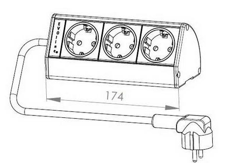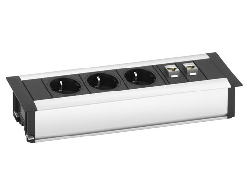 Блок на 2 электрические розетки + 2 USB подходит для крышек Coni. Длина 217 мм. Глубина монтажа 56 мм, подходит для столешницы толщиной 10 мм и более. Кабель 0,1 м с разъемом GST18i3.