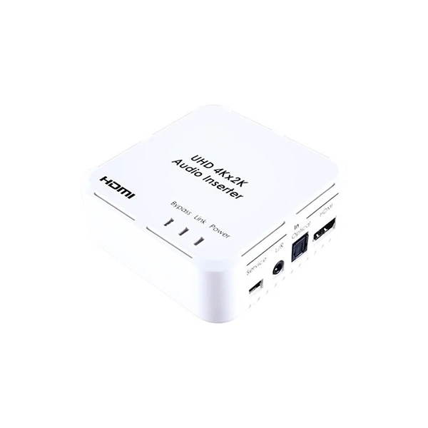Эмбеддер стереофонического аудиосигнала (miniJack 3,5 мм) и цифрового 5.1-канального S/PDIF (TOSLINK) в HDMI 1080p (4Kх2K, 3D) c HDCP, EDID и CEC.