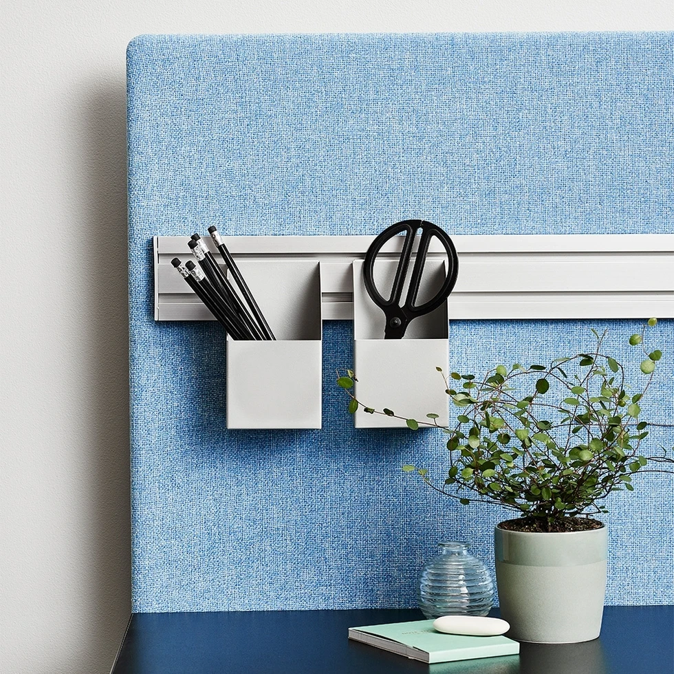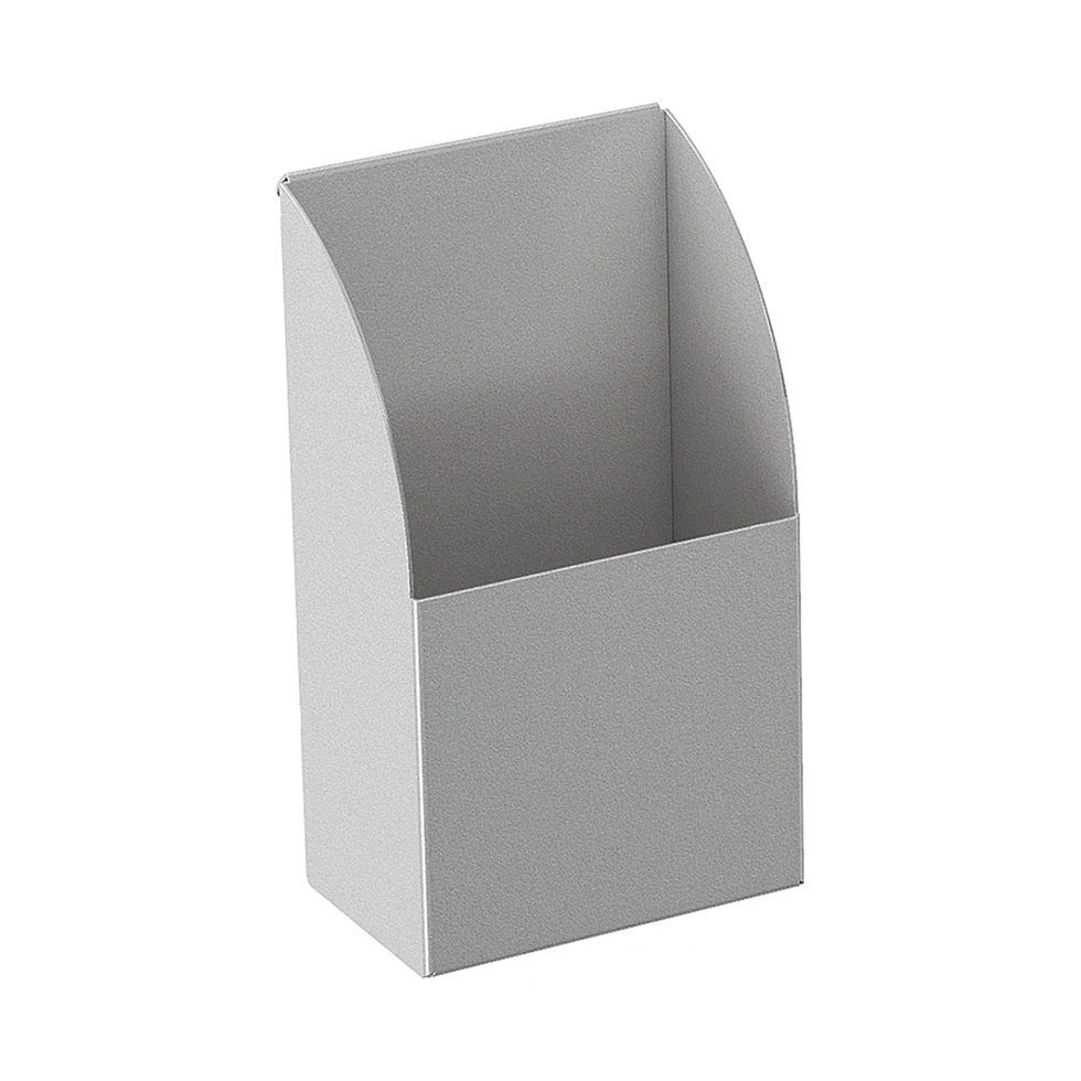 Эргономичная подставка для ручек и мобильных устройств серии Conceptum. Монтаж: на профиль. Габаритные размеры (ШxГxВ): 80х50х140 мм. Цвет серебристый.