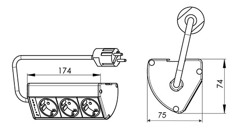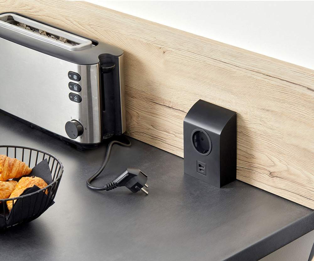 Компактная горизонтальная эргономичная конструкция. Электрические розетки с заземлением 16А 220В. Простой монтаж. Стационарное слайдер-крепление ко дну навесного шкафа, столешнице (включено в комплект).