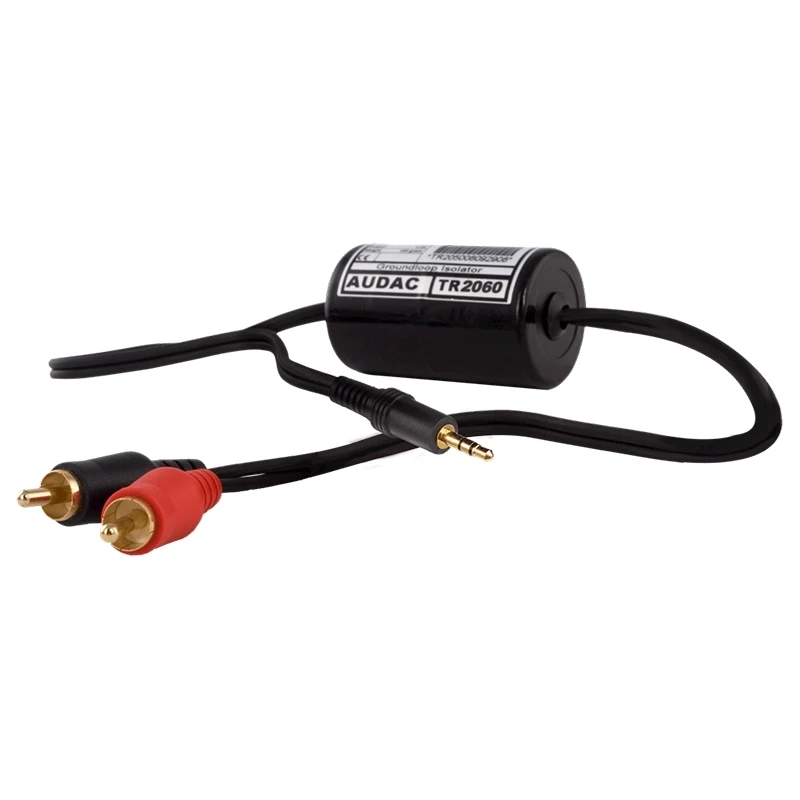 Гальваническая развязка трансформаторного типа miniJack 3,5 мм (розетка) – 2хRCA (вилка). Габаритные размеры: 35x35x65 мм.