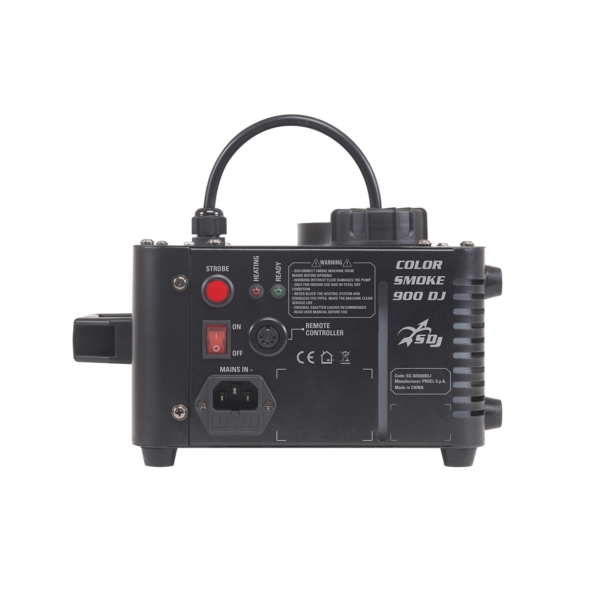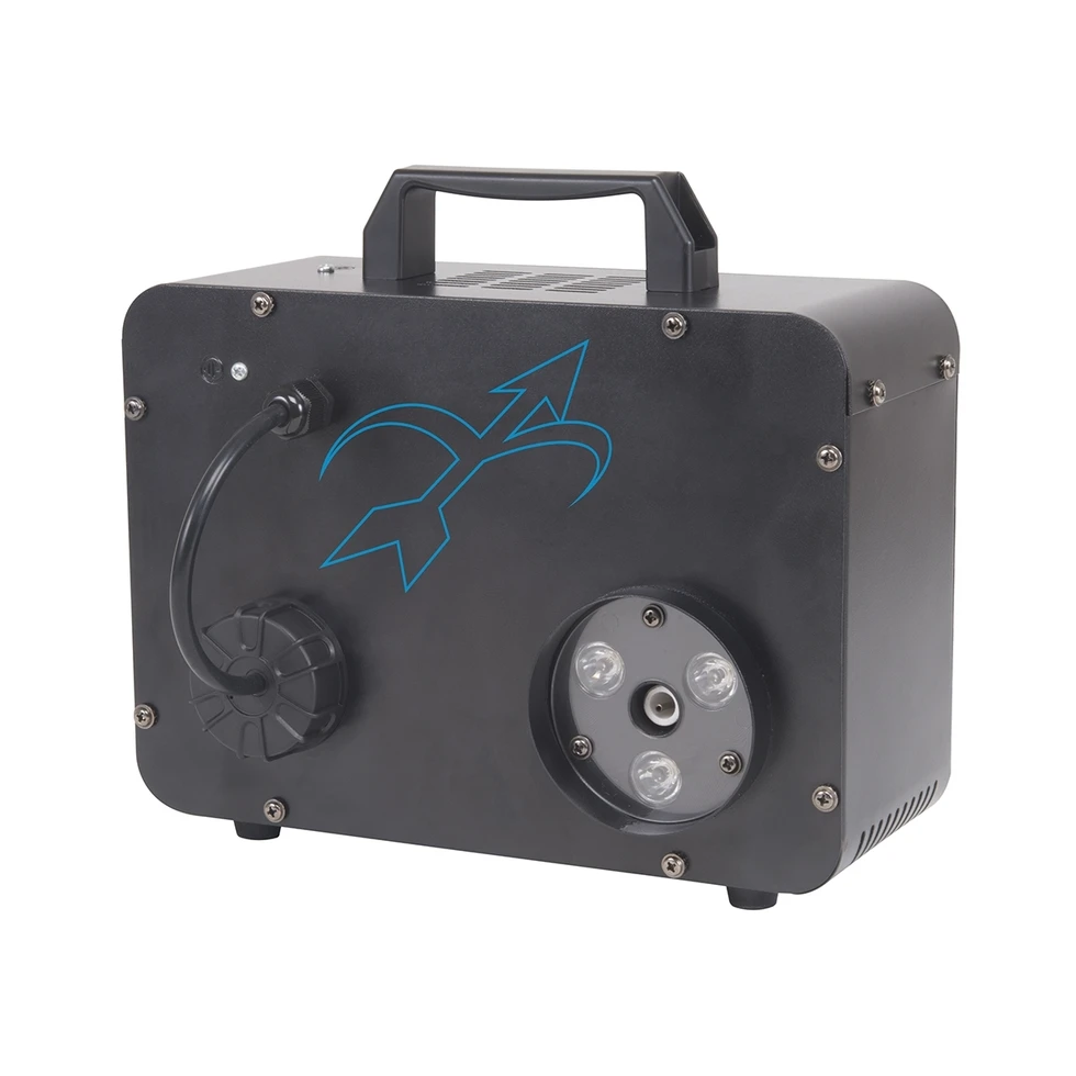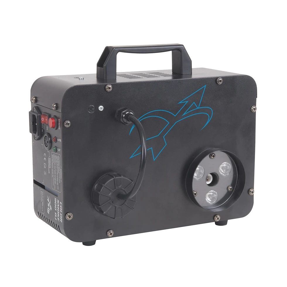 Генератор дыма с подсветкой 3 RGB LED, вертикальный и горизонтальный выброс, 900 Вт, время нагрева 8 мин.