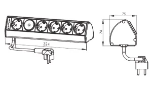 • Количество розеток: 5 (1 неотключаемая розетка + 4 отключаемых розетки + выключатель) с заземлением 16A/220B