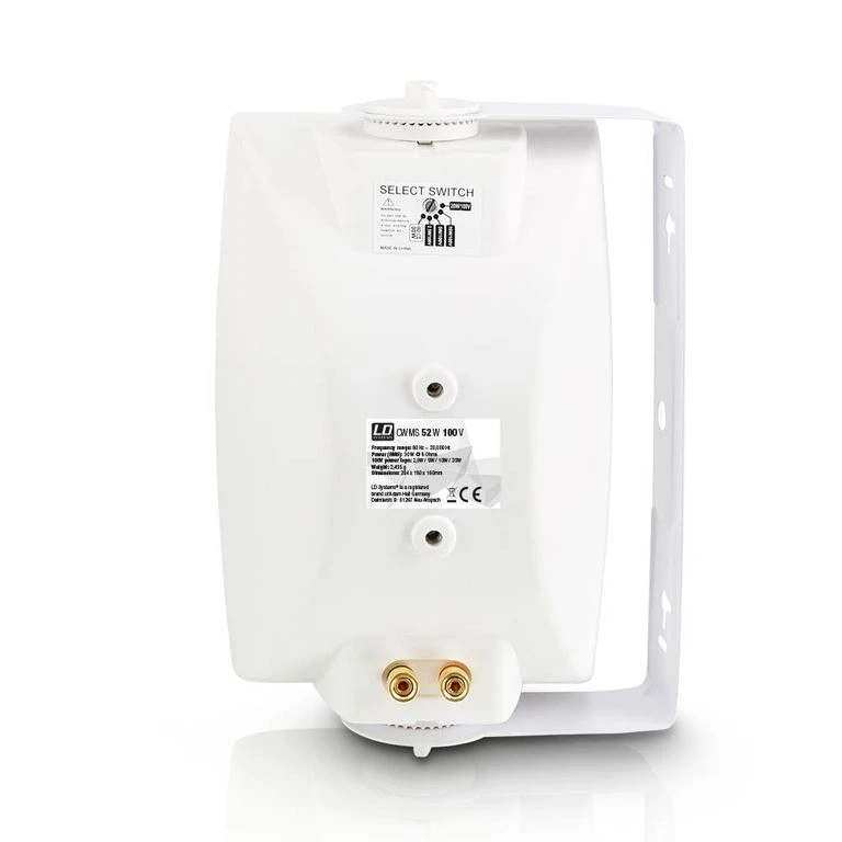 Инсталляционная акустическая система LD Systems Contractor CWMS 52 W 100 V – двухполосный настенный громкоговоритель с минималистичным дизайном оснащен 5,25-дюймовым низкочастотным излучателем и 1,2-дюймовым высокочастотным. Его частотный диапазон достигает 20 кГц, а чувствительность – 88 дБ при 1 Вт/1 м при продолжительной мощности 30 Вт. У CWMS 52 W 100 V высокая разборчивость речи. Система предназначена для широкого спектра применения в системах фонового звука в отелях, ресторанах, барах, салонах, учебных и конференц-залах, а также торговых центрах. Разработана для СОУЭ в версии 100 Вольт с переключателем мощности: 2,5, 5, 10 и 20 Вт.