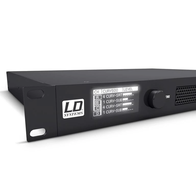 Инсталляционный усилитель мощности LD Systems CURV 500 iAMP, специально разработанный для систем CURV 500®, представляет собой 4-канальный усилитель класса D с DSP и частотной характеристикой 10 Гц - 22 кГц. DSP имеет пресеты для различных конфигураций сателлитов и сабвуферов, задержки и параметрического эквалайзера. Каждый канал обеспечивает продолжительную мощность 240 Вт на 4 Ом с коэффициентом нелинейных искажений менее 0,01%.