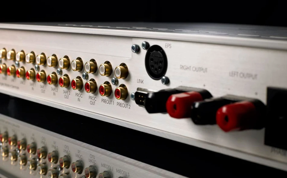 Усилительный каскад В-120 PLUS базируется на конструкции интегрированного усилителя В-150. Мощность В-120 PLUS составляет 2 х 75 Вт при нагрузке 8 Ом и 2 х 150 Вт при нагрузке 4 Ом. И, как и всегда у техники Densen, это лишь номинальная мощность. Блок питания усилителя мощности оснащен четырьмя независимыми источниками питания и электролитным банком на 40 000 мкФ. Всего в В-120 PLUS 7 отдельных источников питания, а общая емкость электролитного банка составляет 90 000 мкФ.
