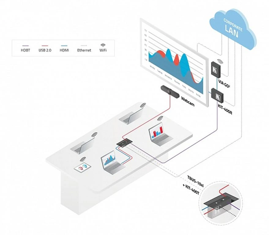 К VIA GO² могут подключиться до 254 пользователей. Благодаря реализованной в линейке VIA концепции BYOD (Bring Your Own Device (Принеси свое личное устройство)) к VIA GO² можно подключить устройства Apple и Android, а также ноутбуки Windows и Chromebook®, используя встроенный Wi-Fi роутер или локальную сеть Ethernet.