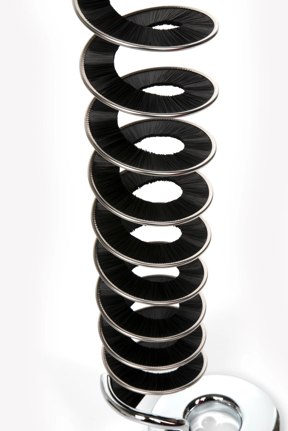Helix — кабель-канал премиального уровня. Идеальное исполнение made in Italy. Благодаря спиралевидной структуре легко растягивается и собирается при изменении высоты стола. Дисковый утяжелитель позволяет сохранять вертиальное положение. Helix идеально подходит для столов с подъемом от 70 до 110 см и для стационарных столов.