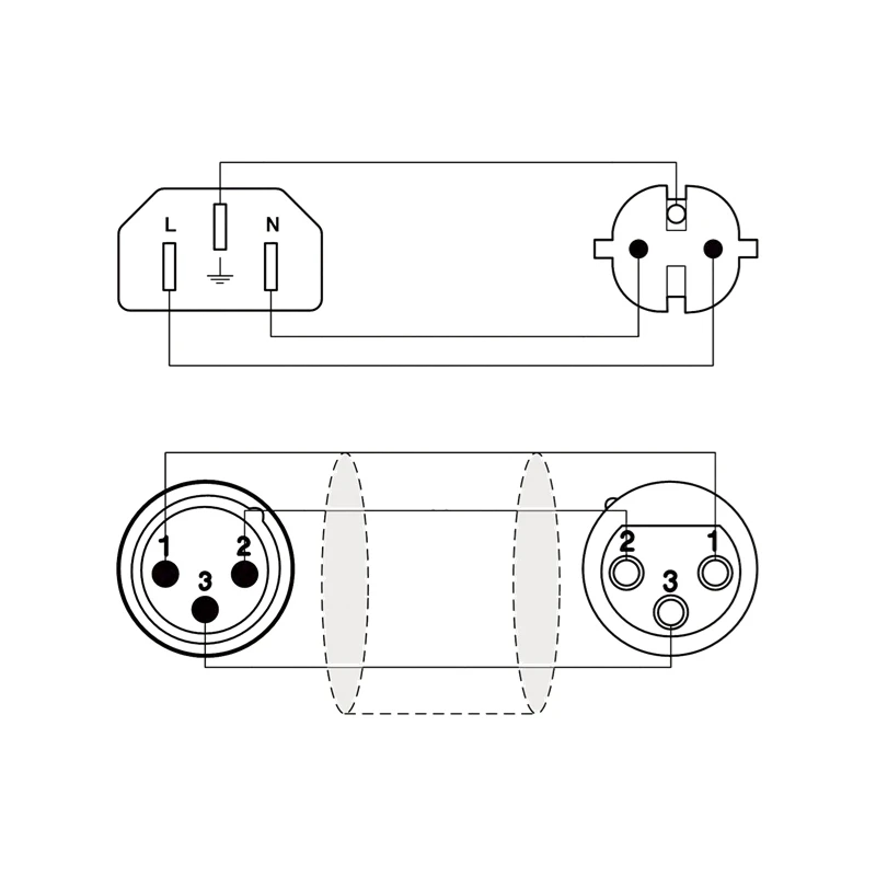 Кабель SCHUKO (вилка), XLR 3-pin (розетка) – Евро C13 (розетка), XLR 3-pin (вилка), 3х1 кв.мм.