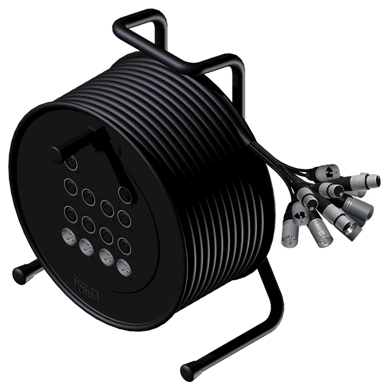 Кабельная катушка с кабелем MCX114 и разъемами, катушка: 10x XLR 3-pin (розетка), 4x XLR 3-pin (вилка) кабель: 10x XLR 3-pin (вилка), 4x XLR 3-pin (розетка), Neutrik.