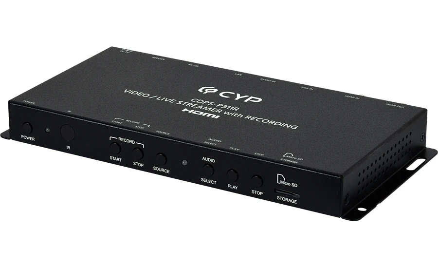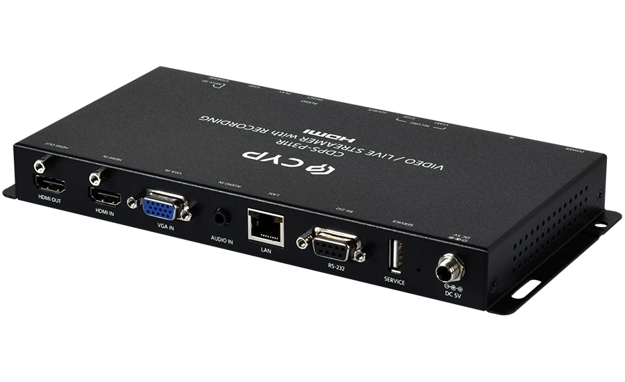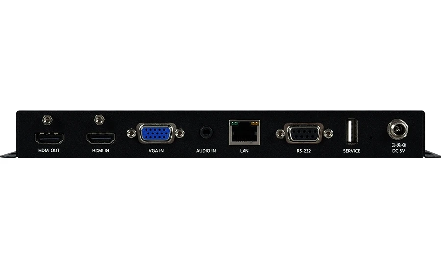 Кодер и передатчик в сеть Ethernet H.264 до 1080p/30 сигналов HDMI 4096x2160p/60 (4:2:0) с HDCP 1.4/2.2 и VGA 1920x1080p/60, файлов с Micro SD или USB, мониторный выход HDMI, вход аналогового стерео (miniJack 3,5 мм), микширование с HDMI (LPCM 2.0). Полоса пропускания 600 МГц. Работает с VLC. Управление по RS-232 и IP (web-интерфейс).