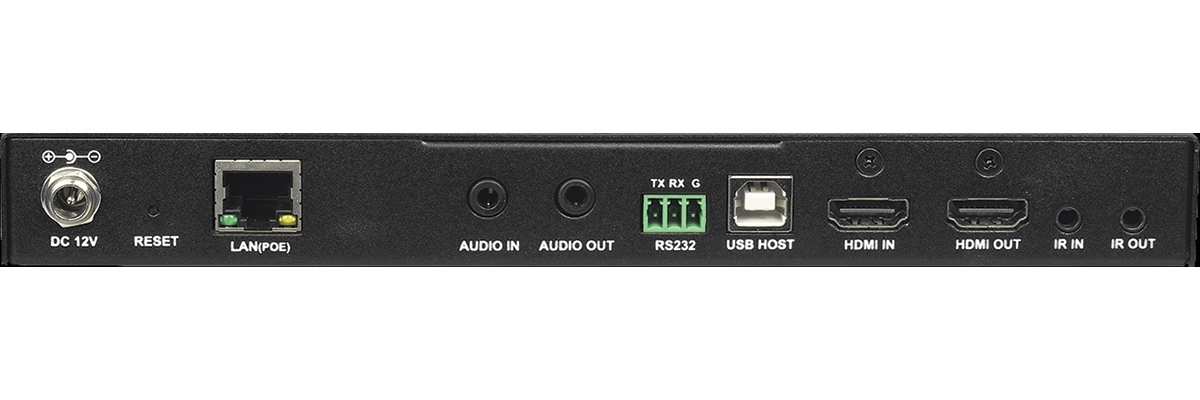 Кодер (передатчик) 4K/60 HDMI (4:2:0), USB и аудио для вещания в сеть IP (1 поток). HDMI с поддержкой эмбеддированного аудио. Сжатие JPEG2000. Формат от 4:4:4 до 4:2:0, 8 бит. Разрешение до 4K60.