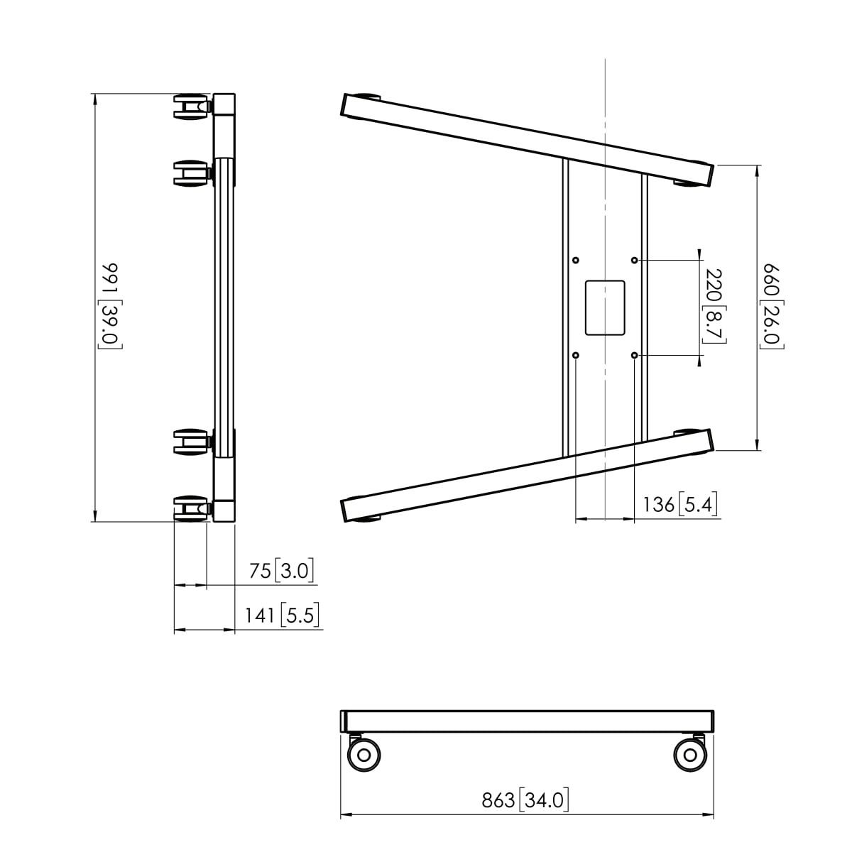 Колёсная база Vogels PFT 8525S. арт 8810 для стендов с электроприводом PFFE 7131. База снабжена 4-я колесами со стопором. Максимальная нагрузка: 120 кг. Материал: сталь. Цвет: серебристый