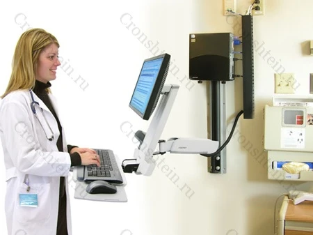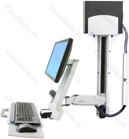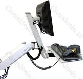 Комбинированное крепление для монитора и клавиатуры StyleView HD Combo System. Монитор, системный блок, клавиатура, сканер, поддержка для запястий – всё это на одном компактном основании. Крепление складывается практически вплотную к стене, для хранения, и раскладывается, когда необходимо для работы.
