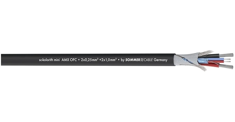 Комбинированный кабель SC-KOLORITH MINI, 2х0,25 кв.мм (аудио) и 2х1,0 кв.мм (питание).