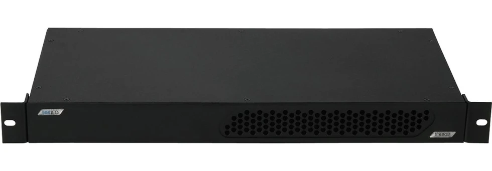 Коммутатор 16х16 источников фоновой музыки для системы GLOBALCOM, 16 входных сигналов от удаленных до 1525 м модулей 510BGM с интерфейсом RJ45, 16 выходных балансных сигналов. Опциональный блок питания PS012 на 48 В. Монтаж в стойку, высота 1U.