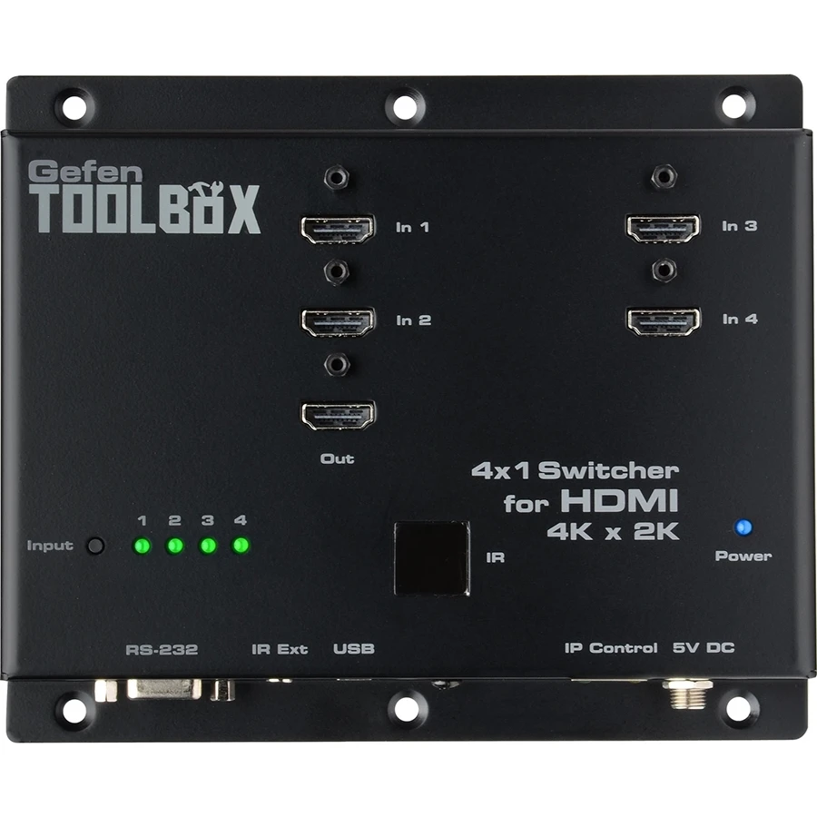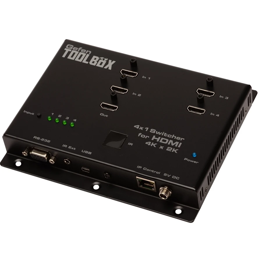 Коммутатор 4x1 сигналов HDMI 1080p (4Kx2K/30, 3D) c HDCP и EDID, управление по ИК, RS-232 и IP, настенный, цвет черный.