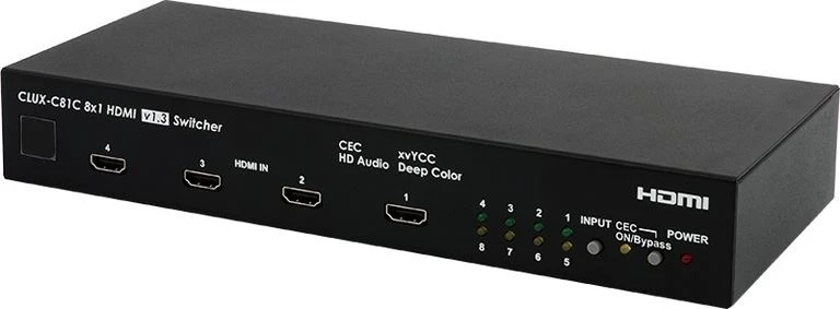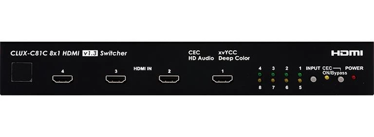Коммутатор 8х1 HDMI 1.3 1080p/24 (1600х1200) с HDCP и CEC, корректор АЧХ, управление по ИК и RS-232, расстояние до 30 м (15+15).