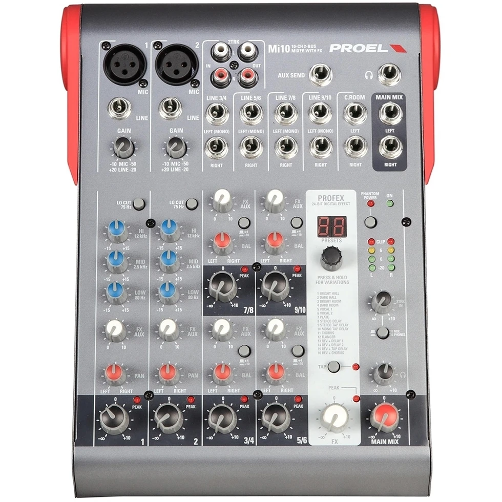 Компактный 10-канальный микшерный пульт, 2 шины.