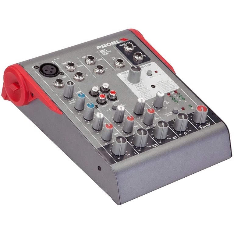Компактный 5-канальный микшерный пульт, 2 шины.