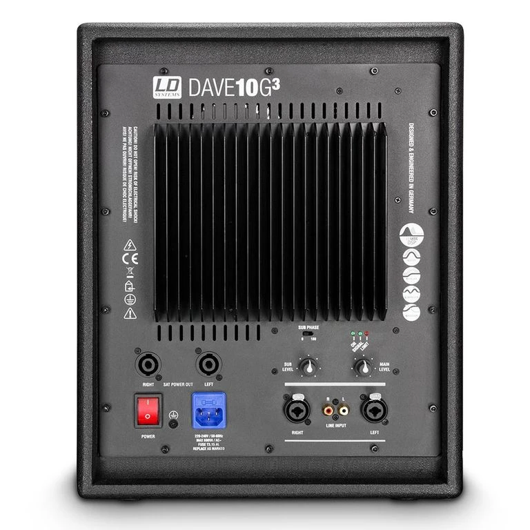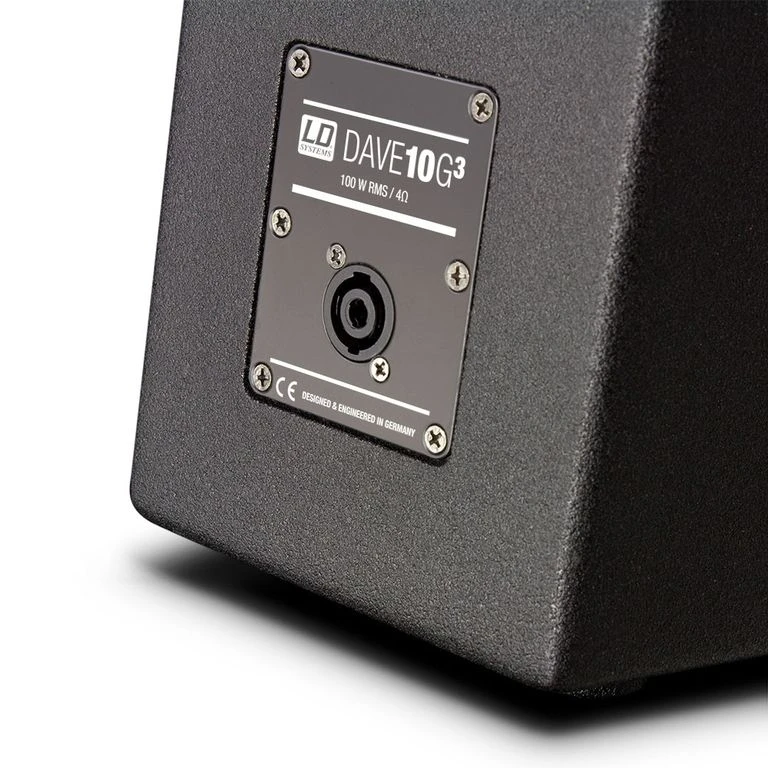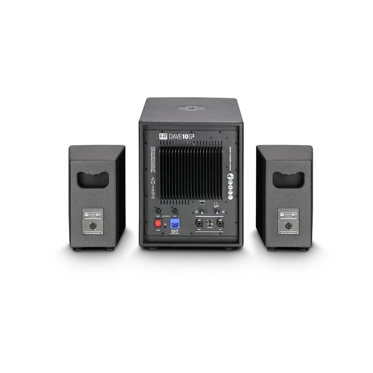 Комплект PA-системы LD Systems DAVE 10 G3 – компактная модель РА-системы с отличными техническими возможностями. Сабвуфер BassReflex характеризуется плотным звучанием баса, в тоже время сателлиты дают четкое разграничение между средними и высокими частотами. Встроенный модуль усилителя мощности обеспечивает пиковую мощность 1400 Вт. Система оснащена интеллектуальным LECC DSP, который включает в себя кроссовер, эквалайзер и лимитеры для низких, средних и высоких частот, а также динамический компрессор. Акустическая система DAVE 10 G3 имеет все необходимые системы защиты. Интерфейсы подключения выполнены на разъёмах RCA, XLR / TRS (jack) и SpeakON. DAVE 10 G3 подходит для использования в качестве портативной акустической системы, и он очень удобен при транспортировке, что делает его незаменимым для сольных артистов и дуэтов. В то же время, система DAVE 10 G3 подходит для небольших инсталляций, например, баров и ресторанов.
