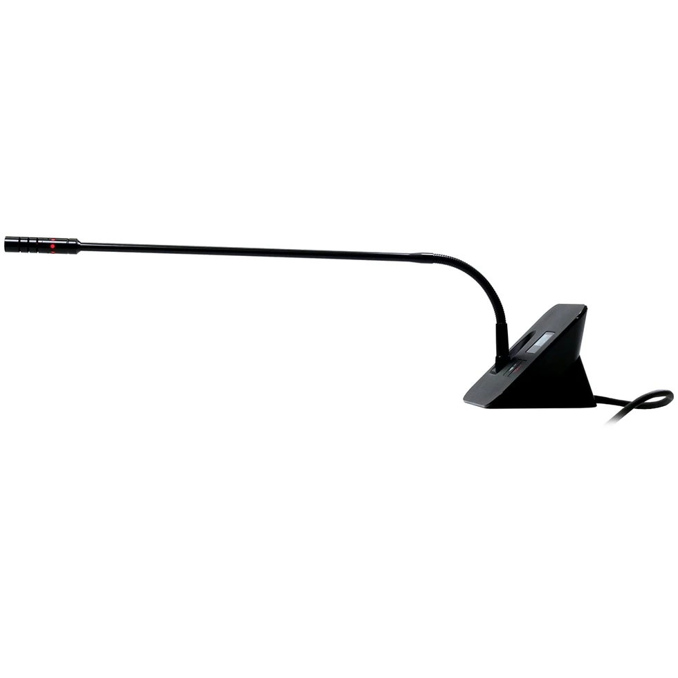 Компактный микрофонный пульт председателя со встроенным OLED-дисплеем и DSP-процессором. Подключение по RJ45. Не комплектуется микрофоном на «гусиной шее».