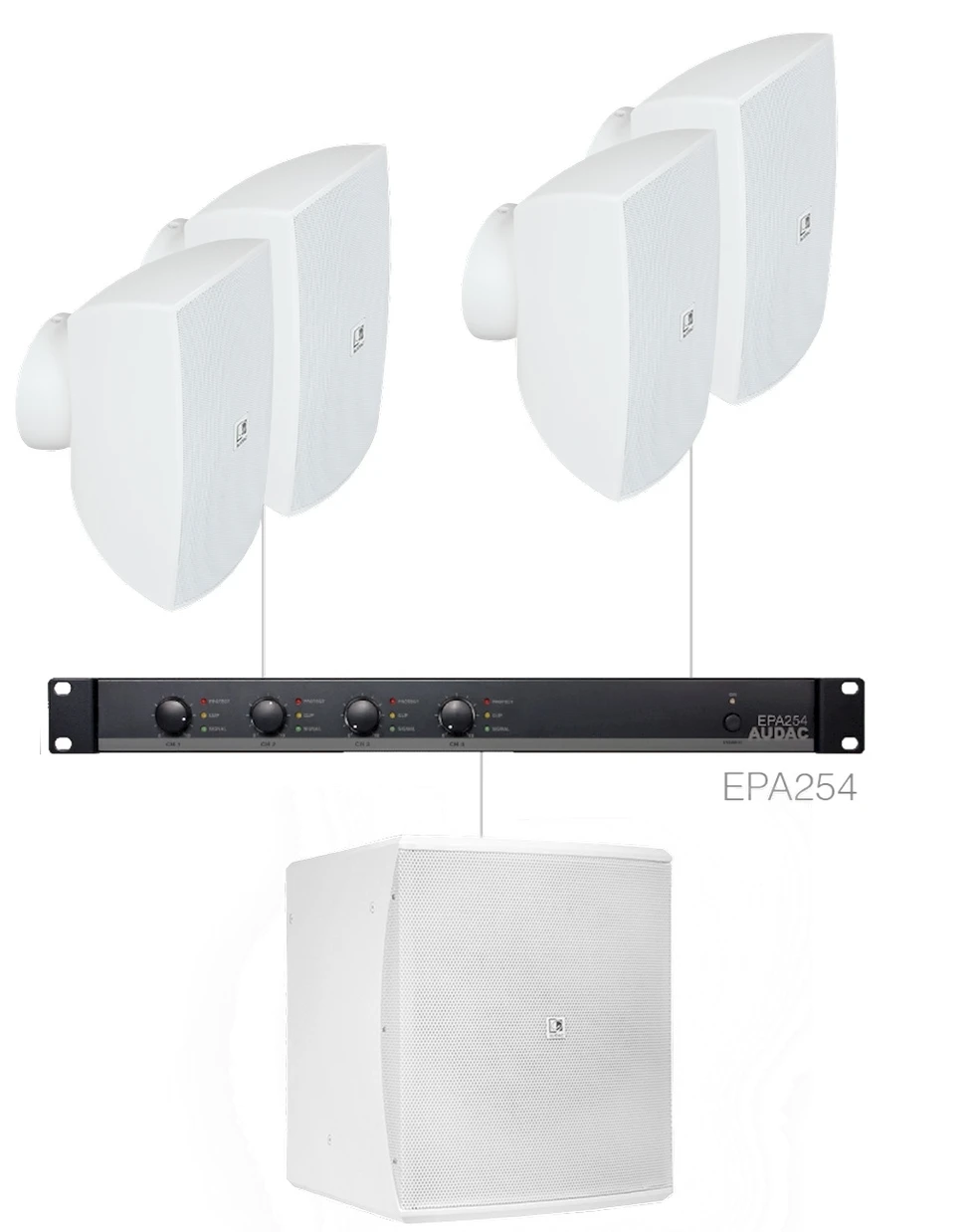 Комплект из АС и усилителя: 4xATEO6 + BASO12 + EPA254. Цвет белый.