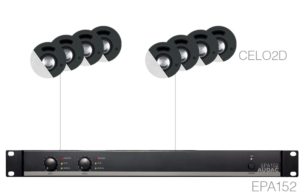 Комплект из АС и усилителя: 8xCELO2/D + 8xGLC02/B + EPA152. Цвет белый.
