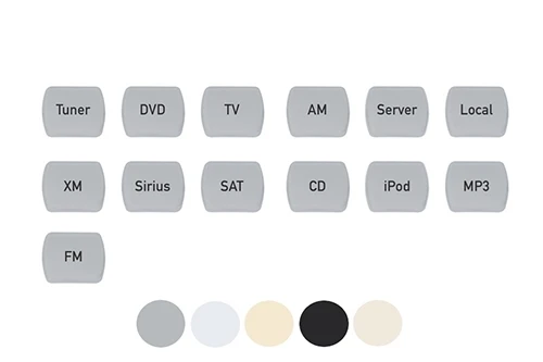 Комплект кнопок для устройства KL201 с гравировкой (Tuner, DVD, TV, AM, MP3, Server, Local, XM, Sirius, SAT, CD, iPod, FM), цвет слоновая кость.