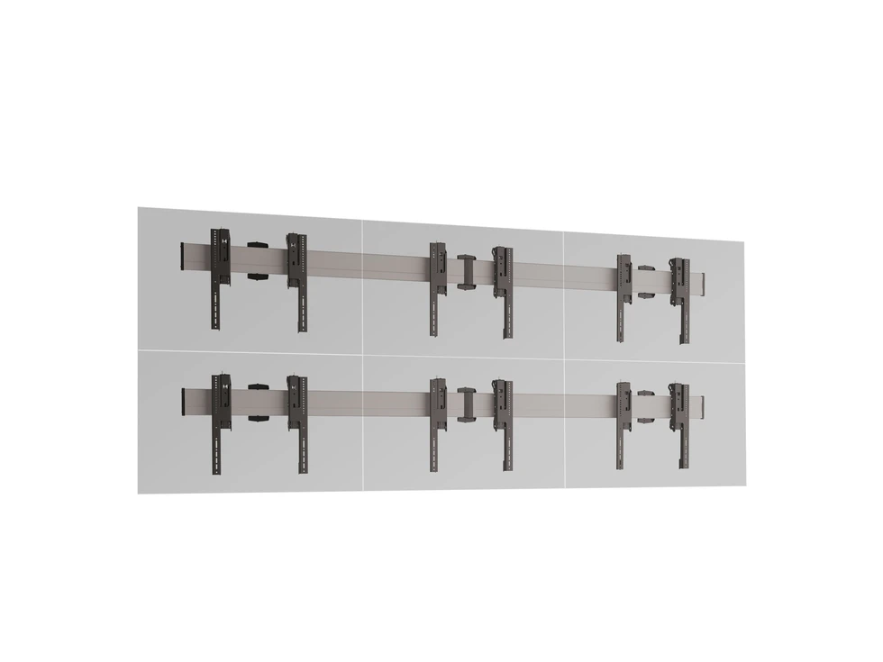 Комплект настенного крепления для видеостены 2х3 Vogels W2384S. арт 8818 из дисплеев с диагональю экрана 50-65''. Альбомная ориентация. Стандарт VESA от 200x200 до 800x400 мм. Возможна регулировка каждого дисплея в трех плоскостях и перевод в сервисное положение. Допустимая нагрузка - 640 кг. Мах масса одного дисплея - 80 кг. Цвет серебристый.