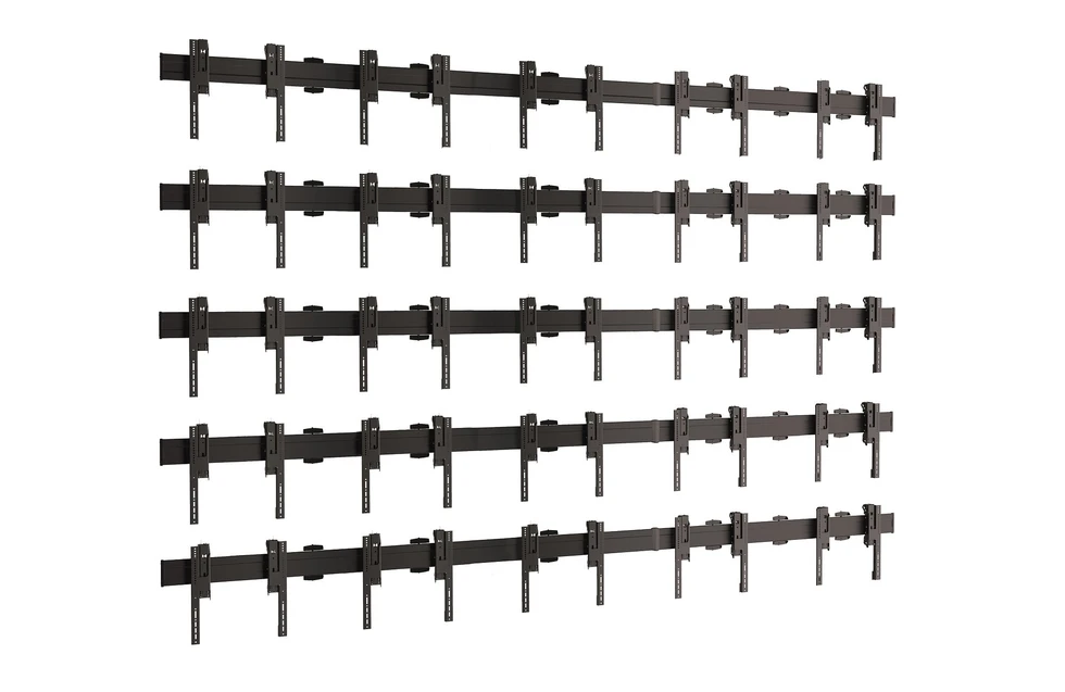 Комплект настенного крепления для видеостены 5х5 Vogels W5564. арт 8837 из дисплеев с диагональю экрана 46-50''. Альбомная ориентация. Стандарт VESA от 200x200 до 600x400 мм. Возможна регулировка каждого дисплея в трех плоскостях и перевод в сервисное положение. Допустимая нагрузка - 1600 кг. Мах масса одного дисплея - 64 кг. Цвет черный.