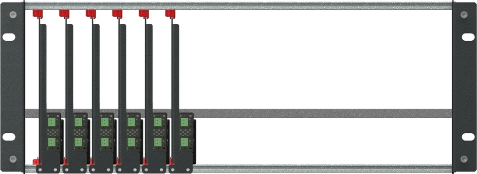 Комплект ONErack для группового монтажа в рэковую стойку, состоящий из шасси 6U и шести модулей, без питания.