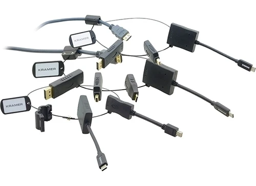 Комплект переходников на общем кольце, включает: Mini DisplayPort (вилка) – HDMI (розетка), USB тип C (вилка) – HDMI (розетка); DisplayPort (вилка) – HDMI (розетка), Mini HDMI тип C (вилка) – HDMI (розетка), фиксатор кабеля.