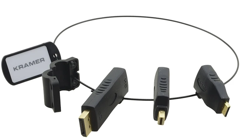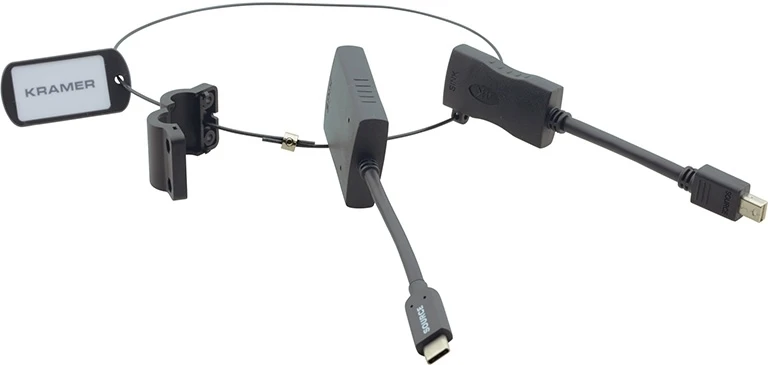 Комплект переходников на общем кольце, включает переходник DisplayPort (вилка) на HDMI (розетка), переходник Mini DisplayPort (вилка) на HDMI (розетка), фиксатор кабеля.