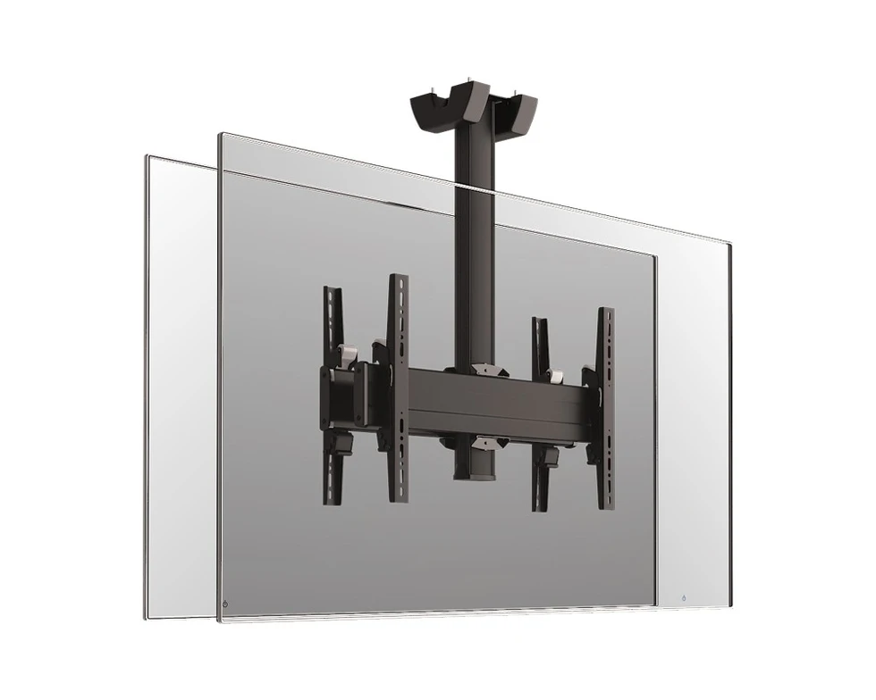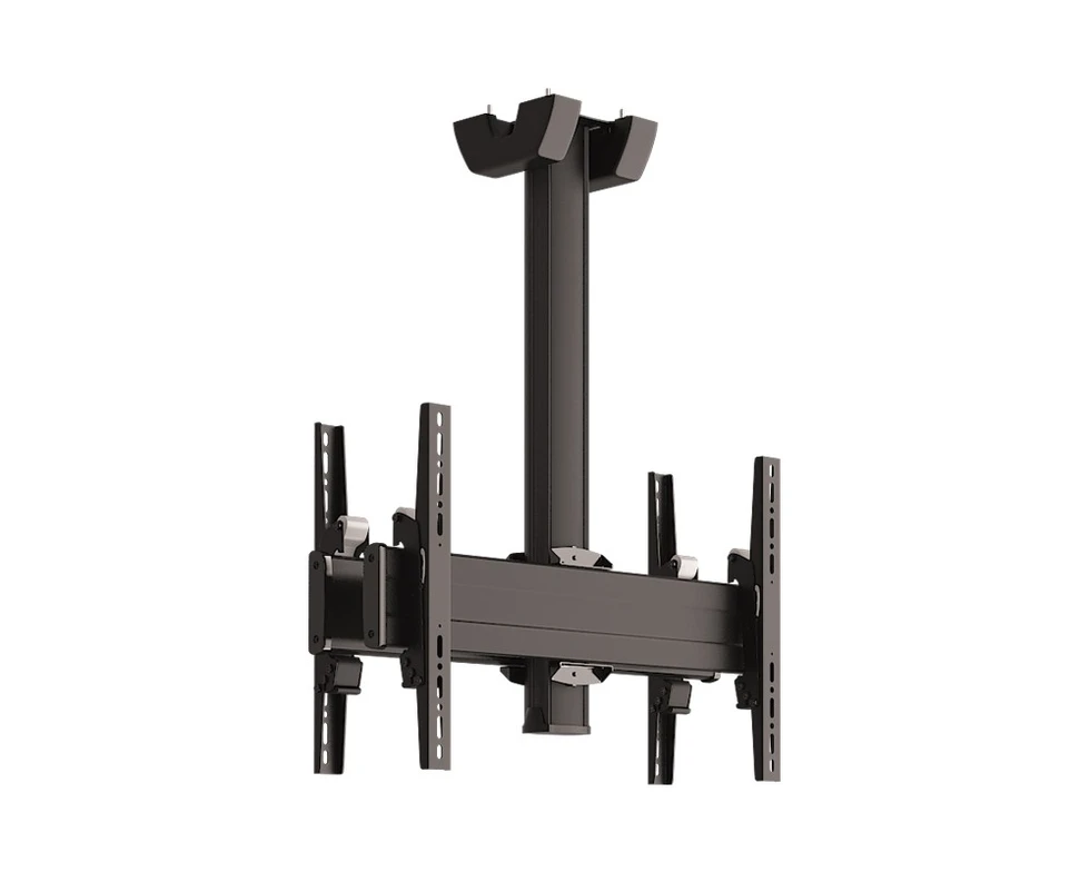 Комплект потолочного двухстороннего крепления для ТВ Vogels C0864 Dual. арт 8739 для дисплеев с диагональю экрана 39-65''. Альбомная ориентация. Предназначено для монтажа дисплеев «спина к спине». Стандарт VESA от 100x100 до 600x400 мм. Регулировка угла наклона 0-10-15-20°. Длина штанги - 80 см. Предусмотрен скрытый кабель - канал CIS. Допустимая нагрузка - 160 кг. Мах масса одного дисплея - 80 кг. Цвет черный.