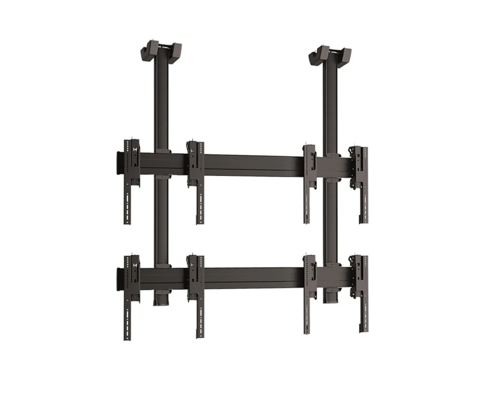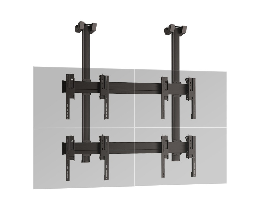 Комплект потолочного крепления для видеостены 2х2 Vogels C2215. арт 8849 из дисплеев с диагональю экрана 42-55''. Альбомная ориентация. Стандарт VESA от 100x100 до 600x400 мм. Наклон +7°/-3°. Возможна регулировка в трех плоскостях. Длина штанги - 150 см. Предусмотрен скрытый кабель канал CIS. Допустимая нагрузка - 160 кг. Мах масса одного дисплея - 40 кг. Цвет черный.