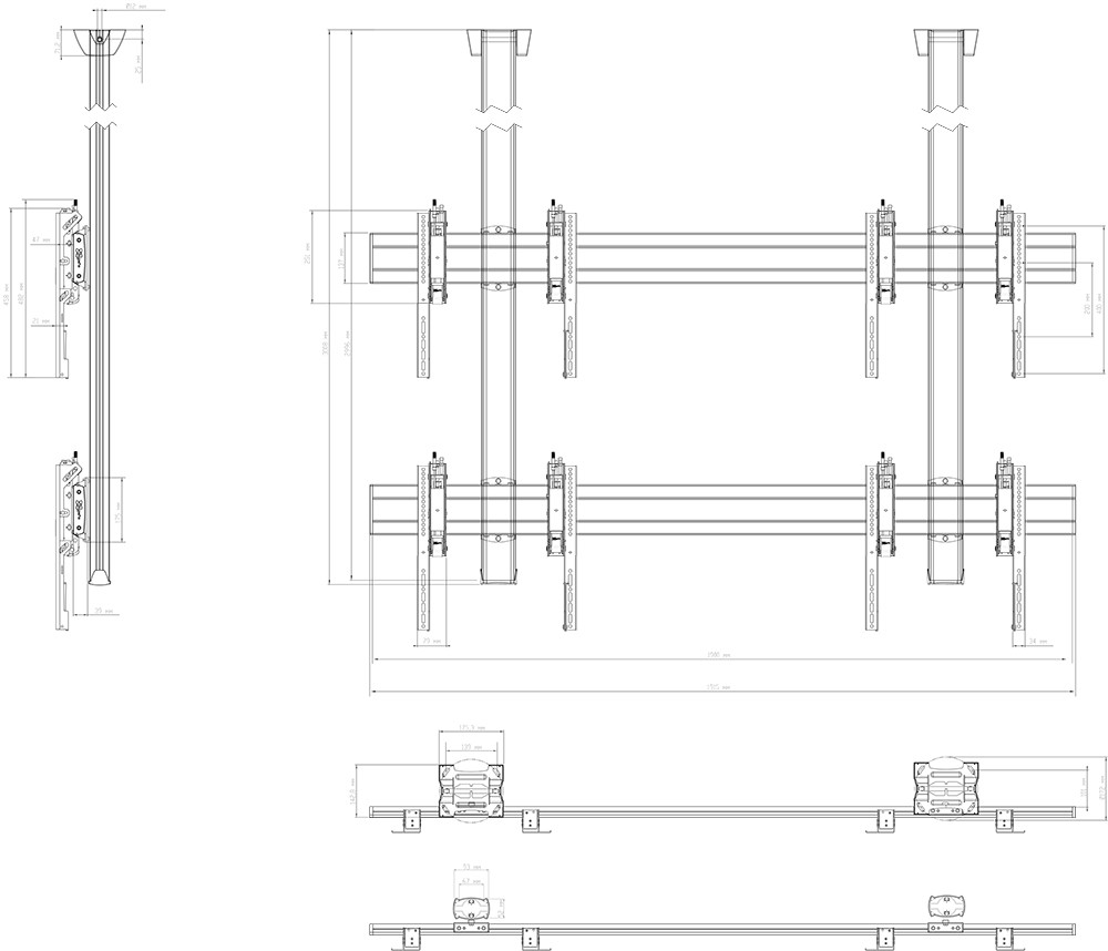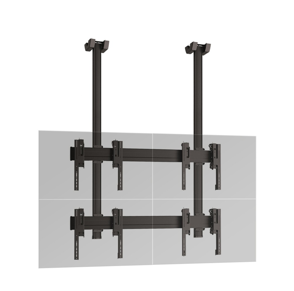 Комплект потолочного крепления для видеостены 2х2 Vogels C2230. арт 8852 из дисплеев с диагональю экрана 42-55''. Альбомная ориентация. Стандарт VESA от 100x100 до 600x400 мм. Наклон +7°/-3°. Возможна регулировка в трех плоскостях. Длина штанги - 300 см. Предусмотрен скрытый кабель канал CIS. Допустимая нагрузка - 160 кг. Мах масса одного дисплея - 40 кг. Цвет чёрный.