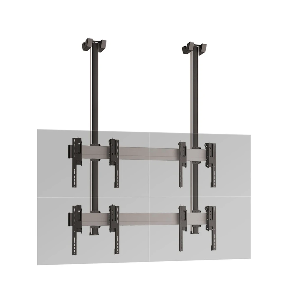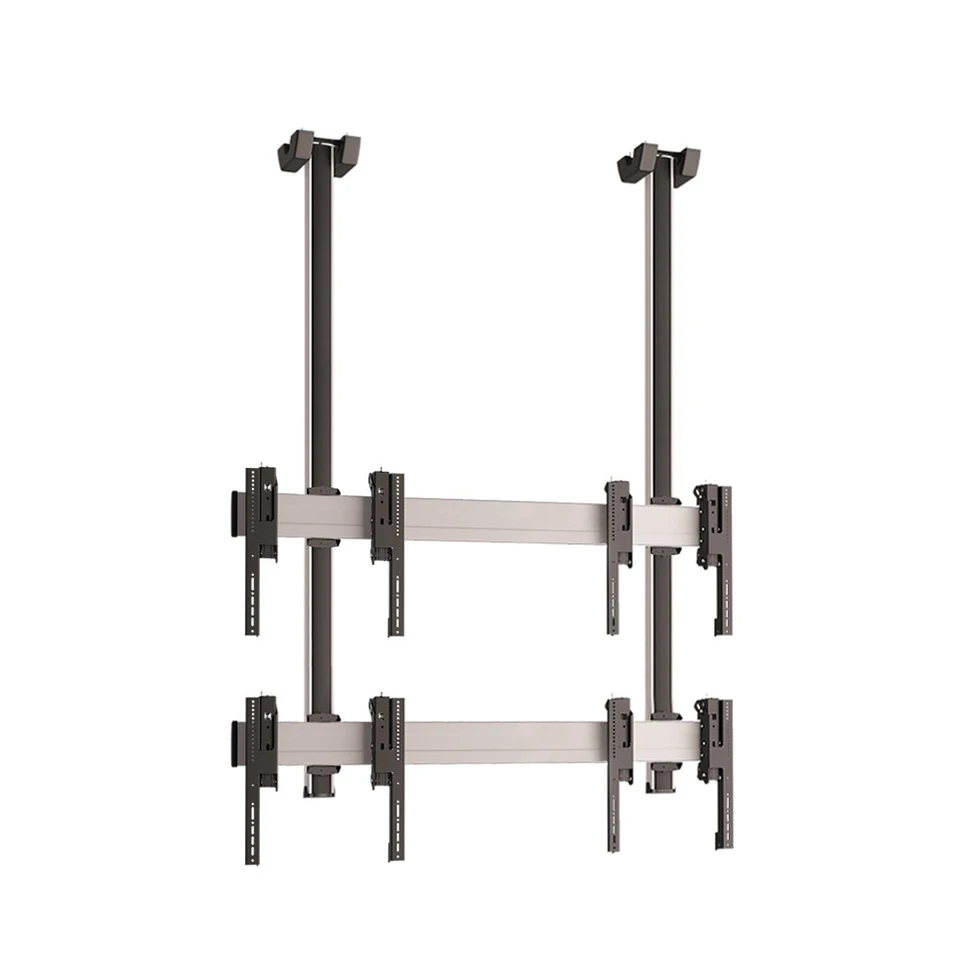 Комплект потолочного крепления для видеостены 2х2 Vogels C2230S. арт 8851 из дисплеев с диагональю экрана 42-55''. Альбомная ориентация. Стандарт VESA от 100x100 до 600x400 мм. Наклон +7°/-3°. Возможна регулировка в трех плоскостях. Длина штанги - 300 см. Предусмотрен скрытый кабель канал CIS. Допустимая нагрузка - 160 кг. Мах масса одного дисплея - 40 кг. Цвет серебристый.
