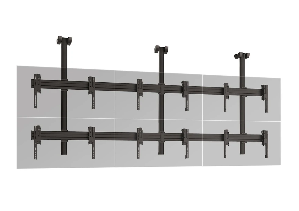 Комплект потолочного крепления для видеостены 2х3 Vogels CB2315. арт 8864 из дисплеев с диагональю экрана 50-65''. Альбомная ориентация. Стандарт VESA от 100x100 до 800x400 мм. Наклон +7°/-3°. Возможна регулировка в трех плоскостях. Длина штанги - 150 см. Предусмотрен скрытый кабель канал CIS. Допустимая нагрузка - 240 кг. Мах масса одного дисплея - 40 кг. Цвет чёрный.