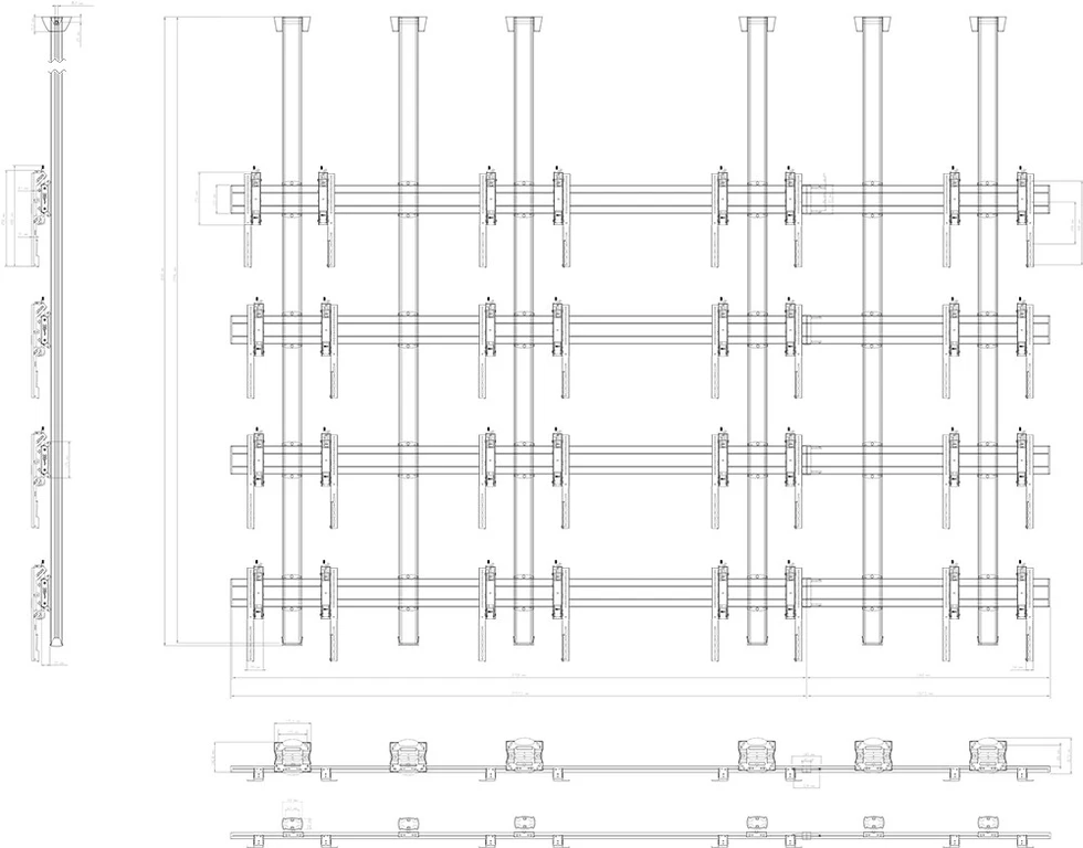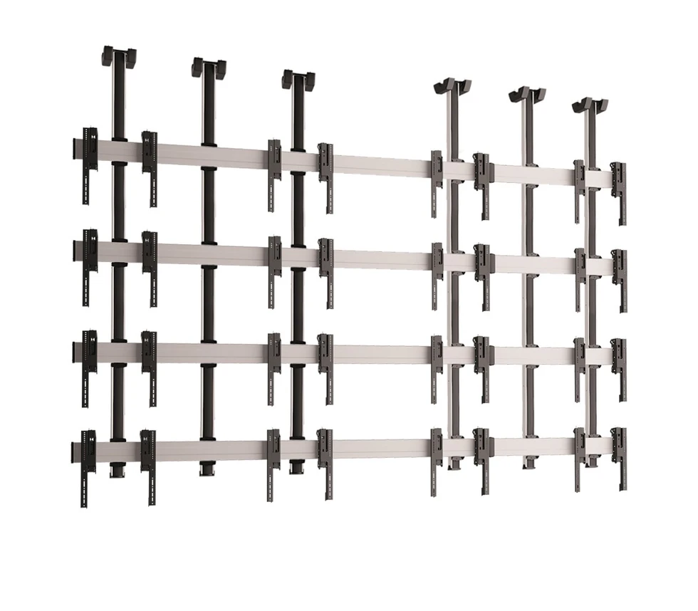 Комплект потолочного крепления для видеостены 4х4 Vogels C4430S. арт 8862 из дисплеев с диагональю экрана 46-50''. Альбомная ориентация. Стандарт VESA от 100x100 до 600x400 мм. Наклон +7°/-3°. Возможна регулировка в трех плоскостях. Длина штанги - 300 см. Предусмотрен скрытый кабель канал CIS. Допустимая нагрузка - 480 кг. Мах масса одного дисплея - 30 кг. Цвет серебристый.