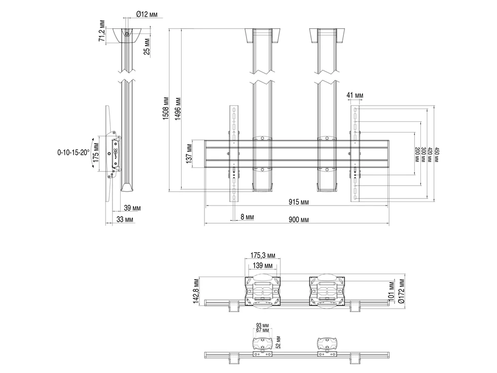 Комплект потолочного крепления с двумя штангами для ТВ Vogels CD1584S. арт 8734 для дисплеев с диагональю экрана свыше 65 дюймов. Альбомная ориентация. Стандарт VESA от 100x100 до 800x400 мм. Регулировка угла наклона 0-10-15-20°. Длина штанги - 150 см. Предусмотрен скрытый-кабель канал CIS. Допустимая нагрузка - 80 кг. Цвет серебристый.