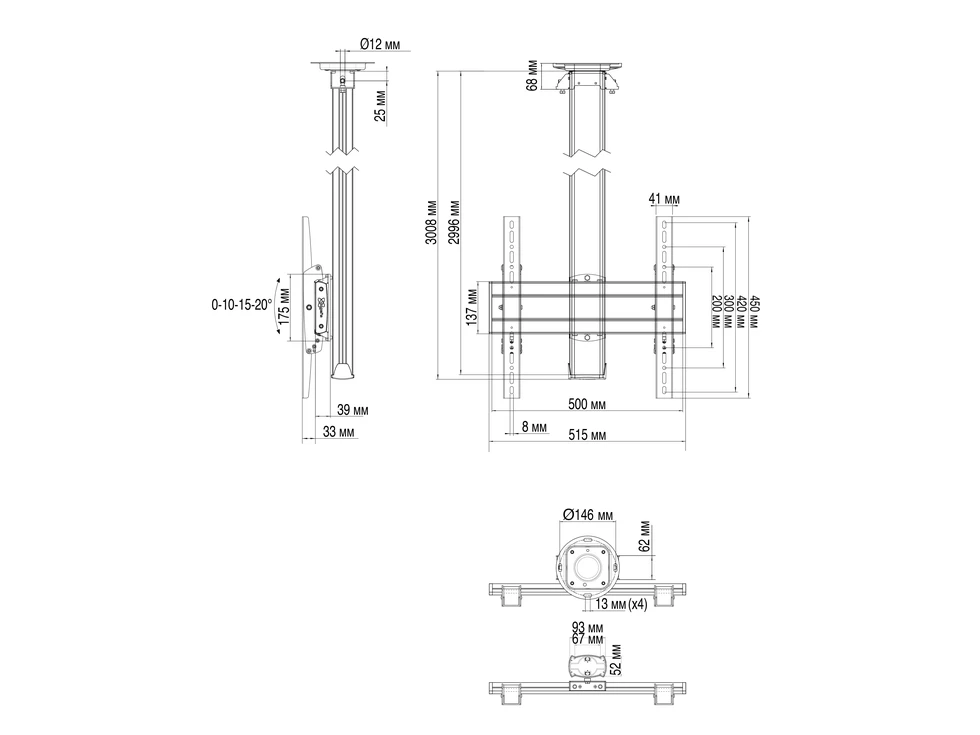 • Угол наклона: 0-10-15-20°