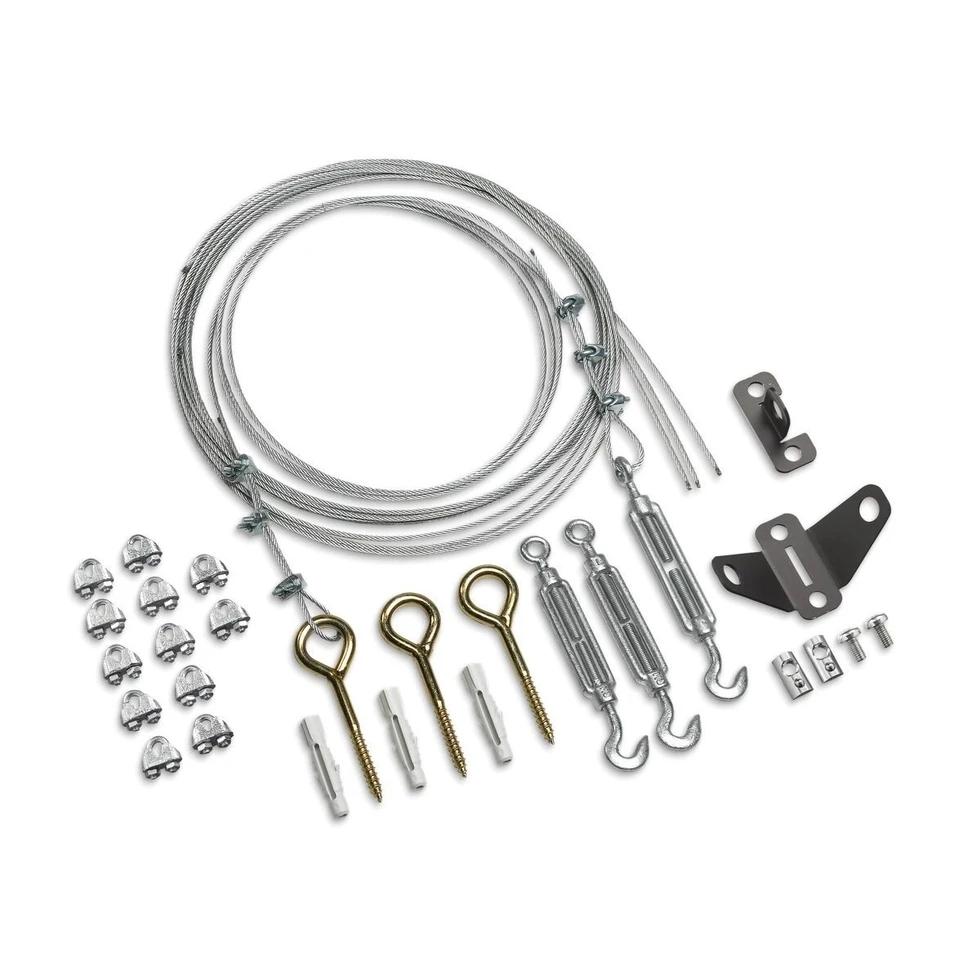 Комплект тросов и крепежа для фиксации штанг PUC 24xx модульной крепежной системы Connect-it. Состав: тросы, талрепы и такелажные болты. Цвет серебристый.