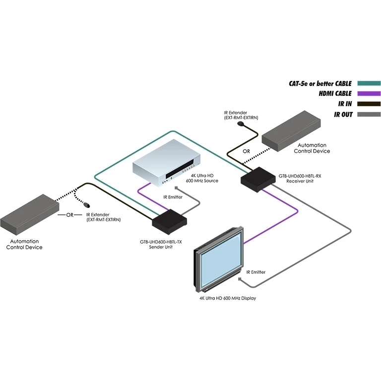 Комплект устройств для передачи HDMI 2.0 4096x2160/60 (4:4:4) с HDCP 1.4 и 2.2, расширенным EDID, CEC, HDR и двунаправленного ИК (2х miniJack 3,5 мм) по витой паре CAT5e с двунаправленным PoL, HDBaseT, полоса пропускания 600 МГц, расстояние передачи 4K – до 40 м, 1080p – до 60 м, настенный. Поддержка Syner-G.