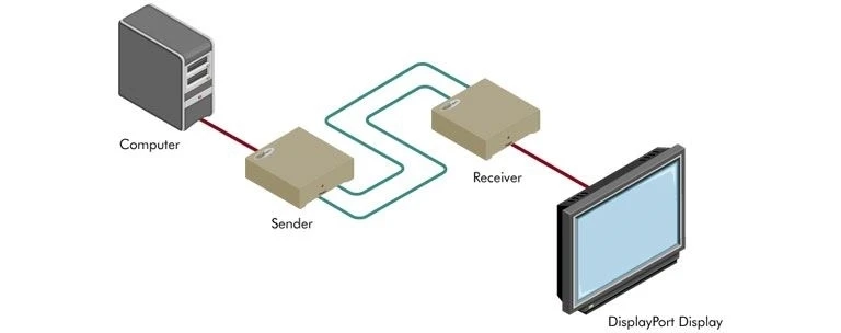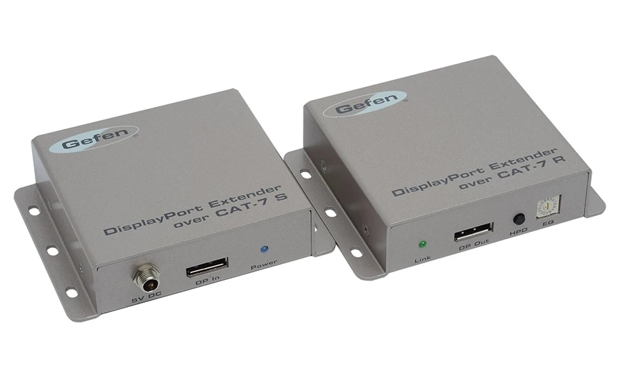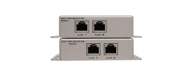 Комплект устройств для передачи сигнала DisplayPort 1080p/120 (2560x1600) с HDCP по двум витым парам CAT7, эквалайзер, расстояние – 30 м, приемник без блока питания, настенный.
