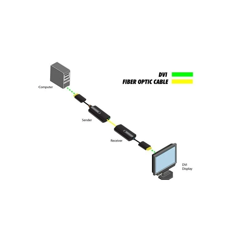 Комплект устройств для передачи сигнала DVI-D Single Link 1080p (1920х1200) с HDCP по многомодовому оптоволоконному кабелю (SC), расстояние 1000 м – OM2/OM3, 300 м – OM1.