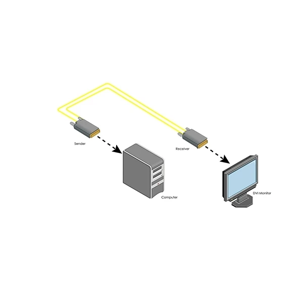 Комплект устройств для передачи сигнала DVI-D Single Link (1920x1200) с EDID по оптоволоконному кабелю (2хLC), расстояние 1500 м – одномодовый кабель, 500 м – многомодовый кабель, передатчик без блока питания.