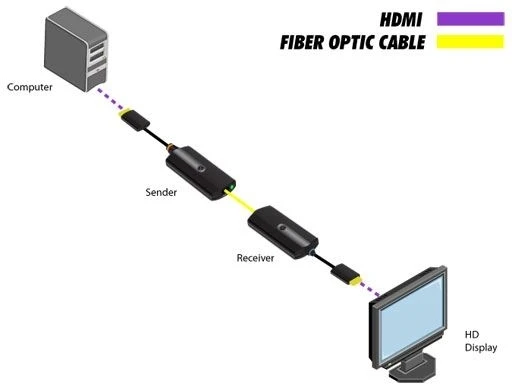 Комплект устройств для передачи сигнала HDMI 1080p, 3D с HDCP по многомодовому оптоволоконному кабелю (SC), расстояние 1000 м – OM2/OM3, 300 м – OM1.